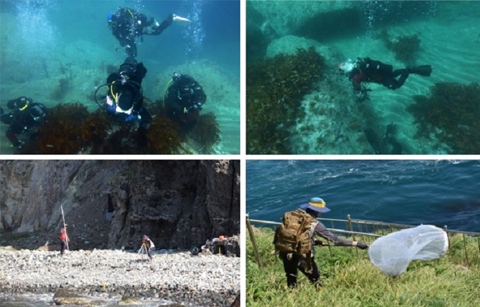 ▲ 독도 생태계 정밀조사는 환경부의 ‘제2차 특정도서보전기본계획(2015~2024년)’에 따라 독도 생태계를 5년 단위로 정밀 진단하는 조사다. 사진은 해조류, 지형, 곤충, 육상 식물 등을 조사하는 모습.